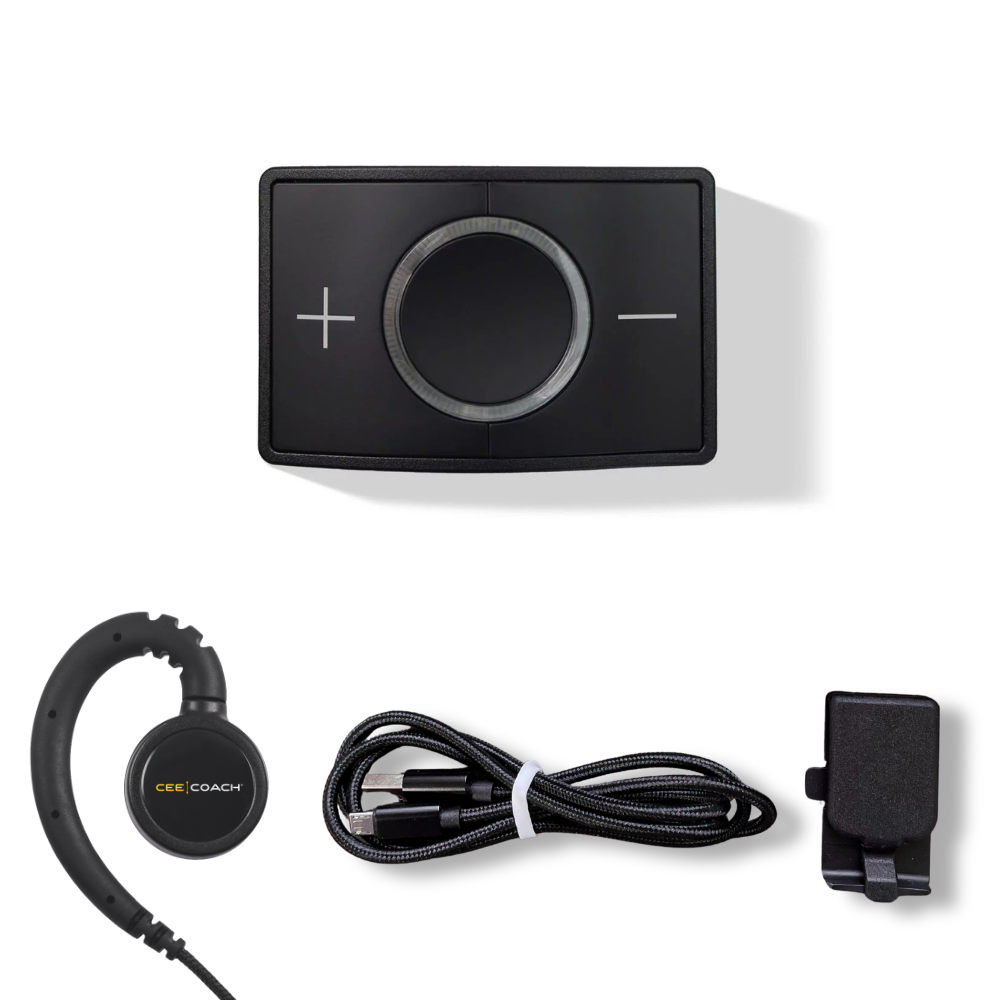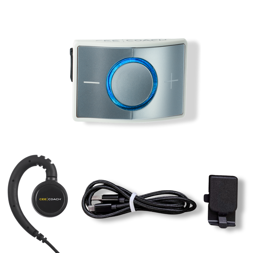 Purchase a refurbished CEECOACH device at a discount. These units have been updated, cleaned and tested in our offices and are packaged with a brand-new wired headset. Includes a 90-day warranty on the CEECOACH device. 90-day warranty on accessories.